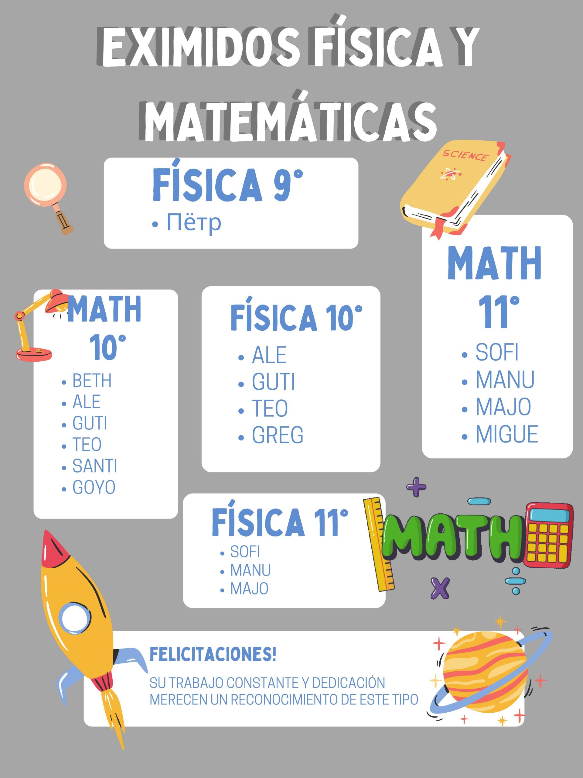 Con orgullo y satisfacción, queremos destacar a un grupo selecto de estudiantes cuyo esfuerzo y dedicación académica los han posicionado en la cima del rendimiento escolar durante el año lectivo 2023. En reconocimiento a sus logros excepcionales, nos complace informar que estos destacados alumnos han sido eximidos de los exámenes finales en las áreas donde demostraron un rendimiento superior. Esta distinción refleja no solo su brillante desempeño, sino también su compromiso constante con la excelencia académica. Felicitamos a estos estudiantes ejemplares y les deseamos el mejor de los éxitos en sus futuros desafíos educativos.